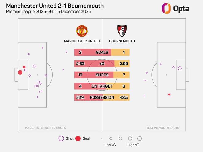 據(jù)Opta統(tǒng)計,曼聯(lián)對陣伯恩茅斯的比賽上半場非點球預(yù)期進(jìn)球值(3.6)、射門次數(shù)(24次),以及在對方禁區(qū)內(nèi)的觸球次數(shù)(41次)均為本賽季英超上半場最多。